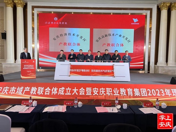 在安庆市域产教联合体成立大会上,朱学云代表市委、市政府对我市市域产教联合体的成立表示祝贺,对两个市域产教联合体下一步具体工作提出了精准对接,提高产教融合深度;充分协同,拓展校企合作宽度协同研发,加快成果转化速度;合作培训,加大技能升级精度;齐心协力,提升品牌塑造力度等5点希望要求。他表示,政府各职能部门将进一步加强政策引导与扶持,搭建信息共享平台,强化基础设施与环境建设,完善考核评价与激励机制,不断提高政治站位,增强服务意识,全力做好联合体建设发展保障工作。