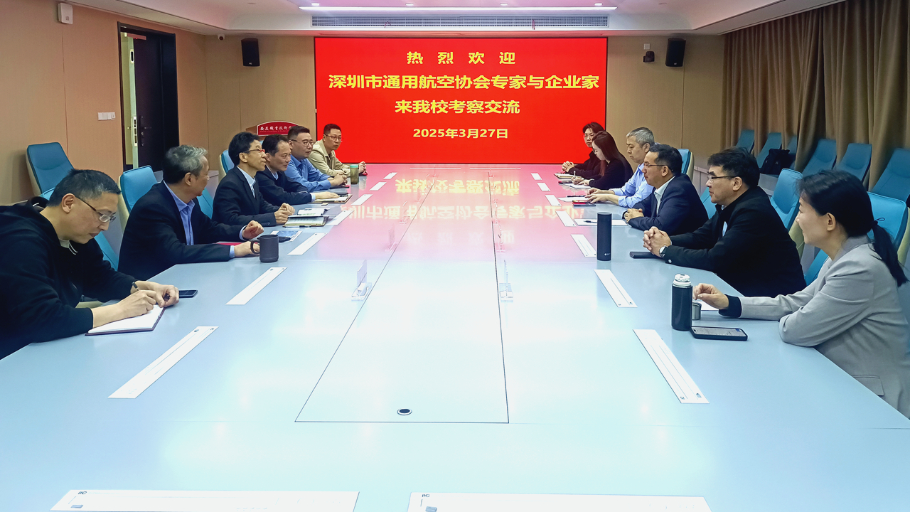 3月27日上午,三航工业技术研究院院长、深圳市通用航空协会创始会长杨金铭率深圳市企业家代表来beat365官网考察交流。校党委副书记、校长毕明生,校党委副书记李克让热情接待来宾并座谈交流。市民政局党组书记江学文,副局长杨善龙一同来访。