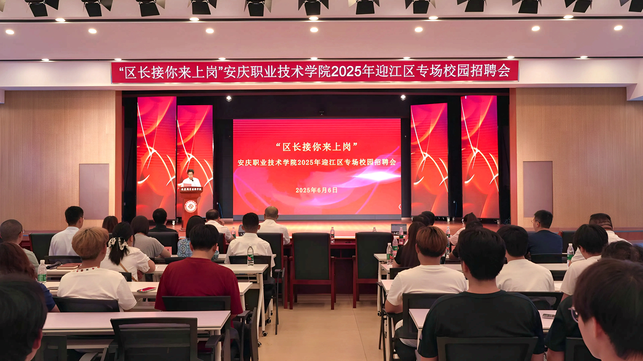 6月6日下午,“区长接你来上岗”迎江区推介会在实训中心报告厅举行。毕明生对迎江区连续四年“区长带队进校招才”的举措给予高度评价。他强调,这一品牌活动的常态化开展,既是迎江区“重企爱才”的生动实践,更是对beat365官网人才培养质量的认可与信任。毕明生向毕业生提出三点殷切期望:一要立大格局,算好人生“发展账”。二要勇克难关,走稳人生“上坡路”。三要心怀感恩,答好人生“责任卷”,希望同学们以“发展合伙人”的姿态,将个人职业规划与地方发展同频共振。
