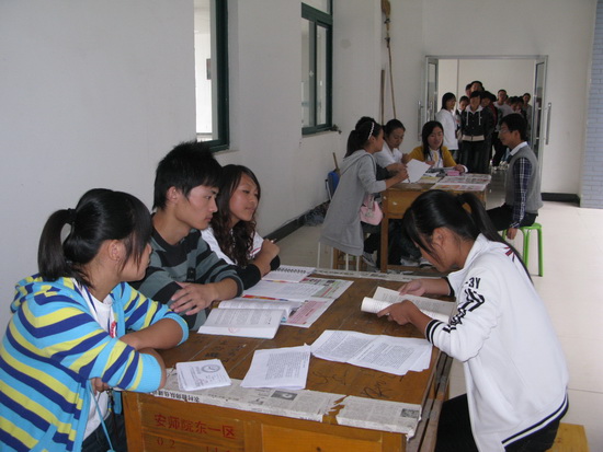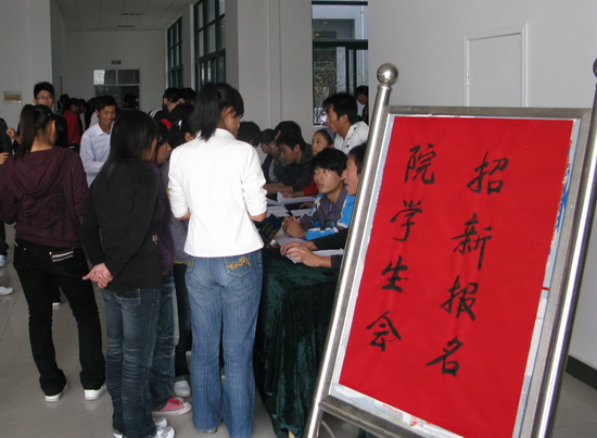 九月的安职院杨柳依风,秀丽的校景满含微笑迎来了2010级新同学。于此奇葩艳卉争相开放的佳期,9月27日中午,院学生会、广播站、《秦潭学报》编辑部在图文信息一楼大厅开始了热火朝天的招新工作。