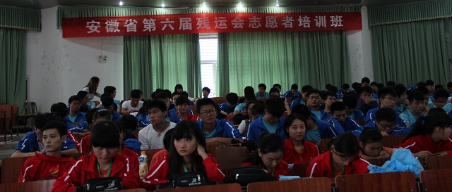 为进一步提高志愿者服务残运会、服务残疾人群体的技能,增强为残疾人服务的技巧。国庆前期,我院280名残运会志愿者在我院图文信息一楼报告厅接受岗前培训。安徽医科大学陈新民教授、安徽省特殊教育中专学校曹灿老师、安徽省残疾人体育训练指导中心段蓓蓓老师分别授课。