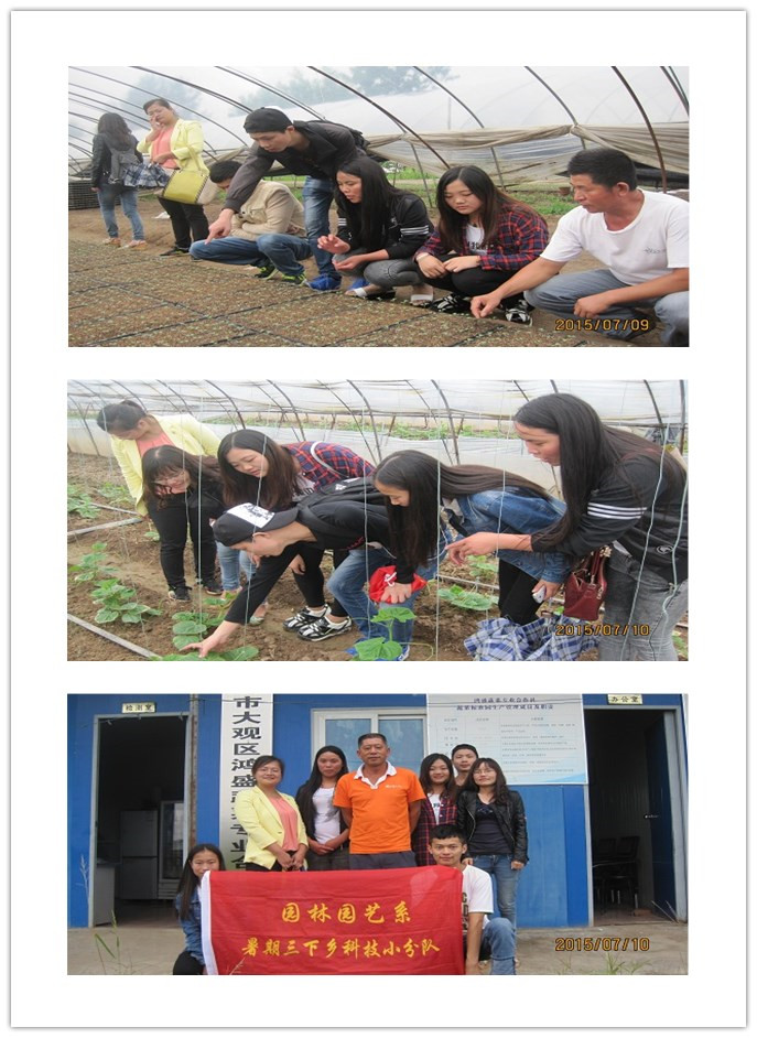 为响应学院暑期“三下乡”活动号召,倡导绿色生活、传播绿色文化、弘扬绿色文明,7月9日至11日,园林园艺系“三下乡”暑期社会实践小分队由李萍老师、徐基艳两位老师带队,对安庆市海口镇多个无公害蔬菜生产基地完成了以“巧用智慧,让无公害蔬菜走进千家万户”为主题的调研活动,在当地村民的积极配合下,活动取得了圆满成功。