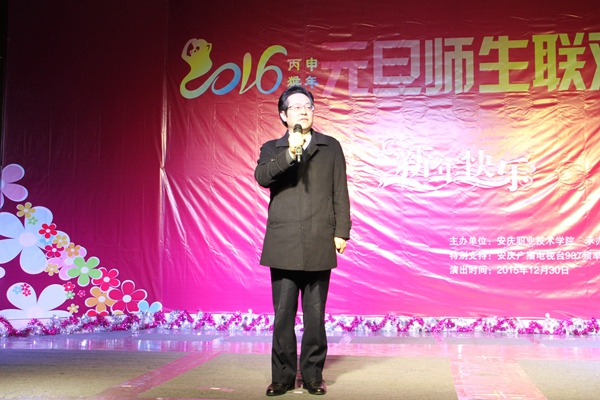 孙晓峰院长代表党政领导班子,向一年来在教学、管理和服务等各个岗位上辛勤耕耘、无私奉献的广大教职员工致以崇高的敬意和新年的祝福;向勤奋学习、朝气蓬勃的广大学生致以亲切的问候和良好的祝愿。他指出,2015年是收获的一年,学院各方面发展都获得了骄人的成绩,它离不开全体老师同学们的共同努力。2016年是“十三五”规划开局之年,也是学院建设地方技能型高水平大学起始之年,坚信在院党委的正确领导下,全体师生的共同努力下携手并肩、团结一心,面对困难不退缩、面对机遇不错过、面对发展不松懈,学院的未来一定更加辉煌灿烂。