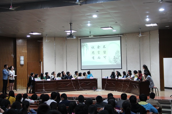 通古博今,一脉相承。为贯彻落实习近平总书记 “培育和弘扬社会主义核心价值观必须立足中华优秀传统文化”的要求,引导广大青年学习中华优秀传统文化,传承中华传统美德,打造书香校园,4月28日晚,我院第二届成语知识竞赛在图文信息一楼报告厅举行。全院600余名学生观摩比赛。