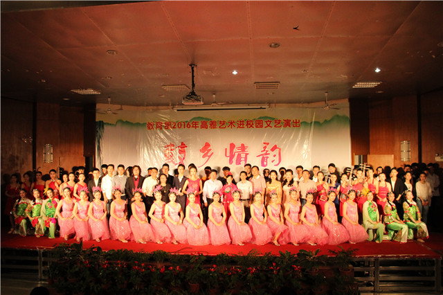 5月25日晚,由安徽省教育厅主办、我院承办的鼓乡情韵——“高雅艺术进校园”活动在图文信息中心一楼报告厅举办。滁州学院花鼓艺术团的演员们为我院师生倾情奉献了一场视听盛宴。滁州学院副校长程曦、我院副院长毕明生出席并致辞。院学生处负责同志、学院团学工作人员及学生代表600余人观看了演出。