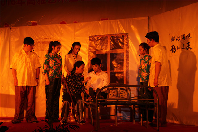 在阵阵掌声中,滁州学院花鼓艺术团的演员们火爆亮相,带来了激情四射的开场舞《火火的花鼓敲起来》,敲出了喜悦,敲出了幸福。演员们甜美的笑容,优雅的身姿,变幻的舞步以及手中灵活的花鼓得到了观众的认可。翩翩的身影还未在脑海消散,脍炙人口的《花鼓凤阳》便在舞台中央响起,说凤阳,道凤阳,凤阳是个好地方,嘹亮的歌声将我们的心引向那片古老、熟悉的土地。音乐剧《忠魂》再现了小岗村“第一书记”沈浩同志的事迹,歌颂了沈浩同志无私奉献的高尚精神,让现场观众热泪盈眶,难以释怀,并以小见大的艺术表现手法,发出“到西部去,到基层去,到祖国需要的地方你去”的号召,倡导新一代大学生在践行社会主义核心价值观中有理想、有作为、有贡献。演出现场节目形式多样,器乐合奏、民歌联唱等形式的节目轮番登场,演出中表演者将“凤阳花鼓”、“安徽花鼓灯”与现代艺术完美的融合在了一起,观众们都目不转睛,现场掌声雷动。