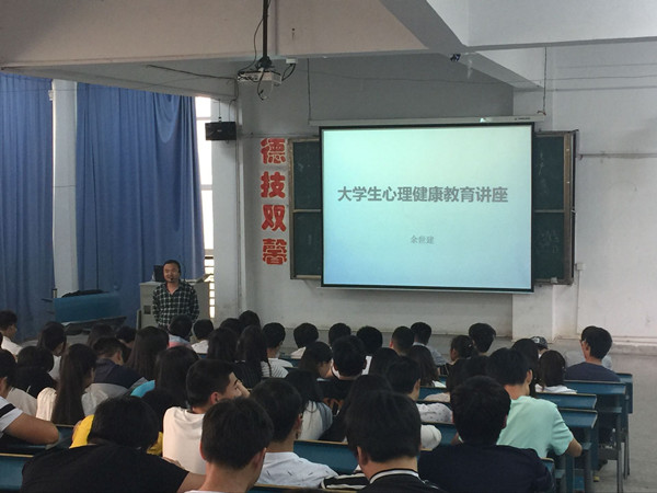 5月25日是全国大学生心理健康日,为进一步普及心理健康知识,帮助学生树立正确的心理健康观念,25日下午,电子信息系在2栋216教室举办了大学生心理健康主题教育讲座。本次讲座由思政部教师余世建主讲,电子系15级200余名同学聆听了讲座。