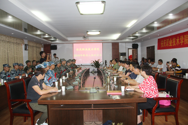 9月12日下午,我院举行2016年大学生新兵入伍欢送会。党委委员、副院长毕明生,迎江区委常委、人武部政委钱志宏出席,学院武装部部长程飞主持会议。从院校地迎江区入伍的19名新兵及其家长、各系党总支副书记和征兵专管老师参加了欢送会。