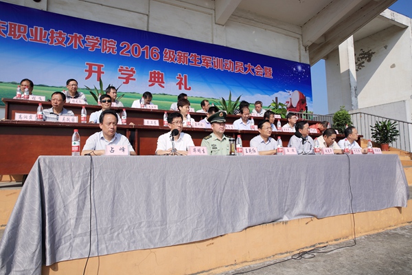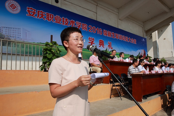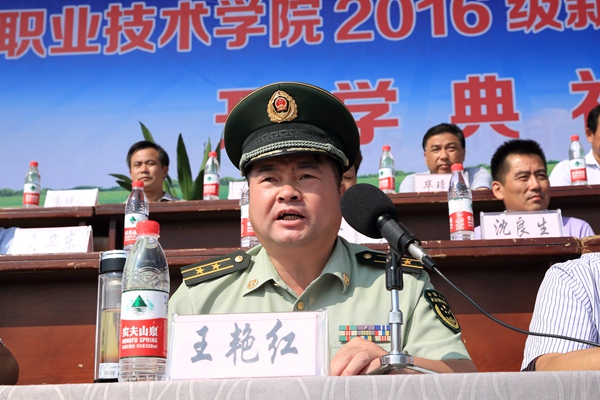 9月13日上午,我院2016级新生开学典礼暨军训动员大会在学院田径场隆重举行。院党委书记王进、安庆市武警支队副政委王艳红出席典礼并讲话。副院长毕明生主持会议。院领导施运华、方天祜、占峰、谭维奇出席。各系部、处室、中心负责人及2016级新生、军训教官参加了典礼。