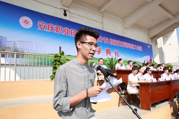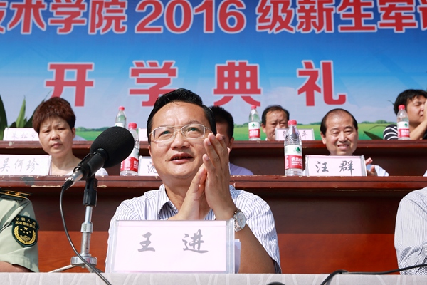 王进向全体新同学的到来表示诚挚的祝贺和热烈的欢迎,祝贺同学们踏上人生新的征程。他介绍了安庆悠久的历史文化和学院基本情况,并对新生们提出几点希望。一要刻苦训练,锤炼意志,把军训作为砥砺品格、磨练意志、提升自我的一次大好机会。二要勤学笃行,增长知识才干,努力学习专业技能,成为具有大国工匠精神的高素质应用型技能型人才。三要心怀梦想,把握青春时光,做时间、梦想和人生的主人,既要把自己的青春梦想和中华民族伟大复兴的中国梦结合起来,更要把自己的人生理想融入国家和民族的建设中,实现人生价值。