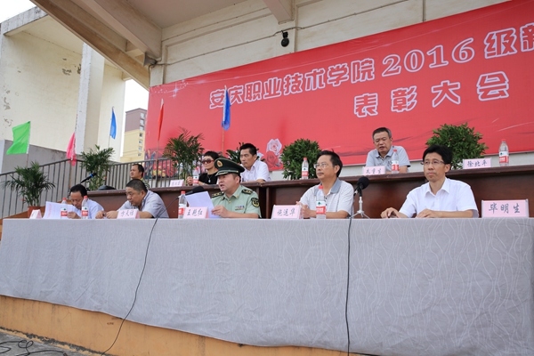20日下午,我院2016级新生军训总结表彰大会在院田径场隆重举行。副院长施运华、毕明生、占峰,武警安庆市支队副政委王艳红出席。纪委书记方天祜主持大会。各系及办公室、学生处负责人,全体新生及辅导员参加大会。