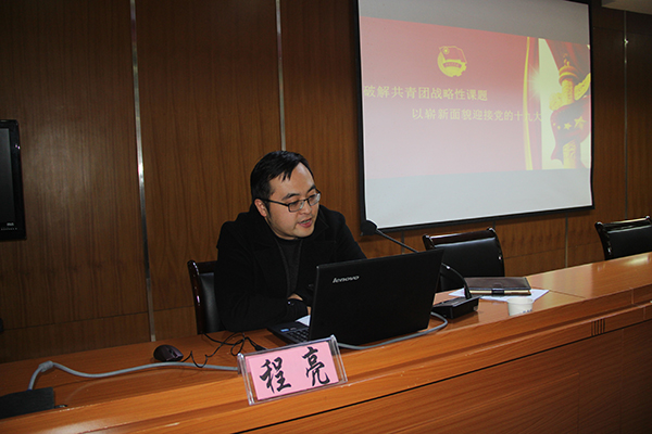 会后,程亮作题为《破解共青团战略性课题 以崭新面貌迎接党的十九大》团课,讲座阐述了共青团中央改革的重大意义、解读了共青团改革的方案、明确了有序推进共青团改革的要求、重点介绍了学校共青团改革的内容以及改革方案的学习要求。讲座内容丰富,分析透彻,既有高度又有深度。(文/陈 颖 图/王晓林)