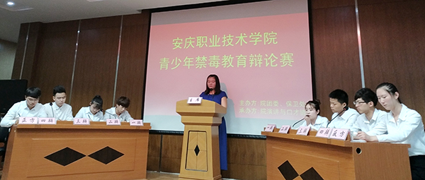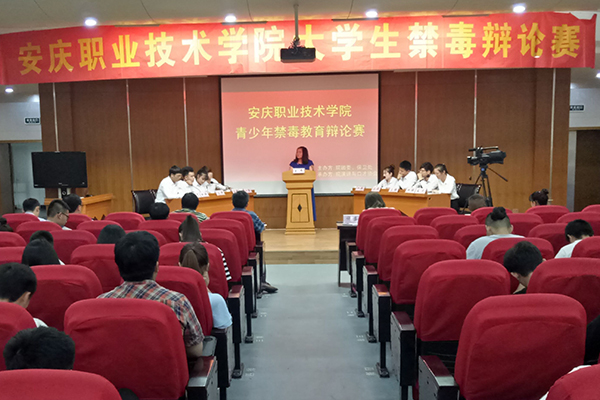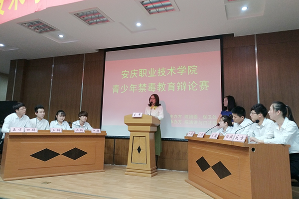 6月1日下午,我院在学术报告厅举办首届禁毒辩论赛。安庆市开发区管委会综治办、安庆市公安局菱北分局刑警大队、安庆市公安局菱北分局老峰派出所负责同志到场指导。院学生处、团委、保卫处负责同志和演讲与口才协会指导老师担任评委。