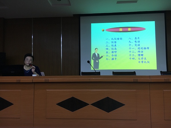 讲座中,王教授就仪容、服装、仪态、称呼、电话、交谈、迎送、拜访、名片、馈赠等14个方面的礼仪知识做了全面生动详细地介绍,并着重强调了在校大学生行为礼仪规范。讲座内容具体受用、贴近生活实际,图文并茂、通俗易懂,既有礼仪理论讲解,又有礼仪正反示范案例。王教授饱含激情的讲述赢得同学们的阵阵掌声,同学们纷纷表示受益匪浅。