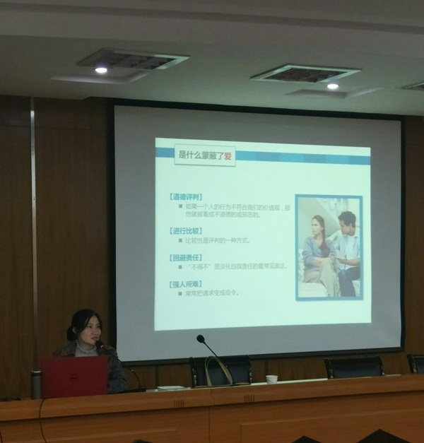 当我们褪去隐蔽的精神暴力,爱将自然流露。11月16日晚,科学人文艺术素质系列讲座——《非暴力沟通》在图文信息楼三楼报告厅举行。本次讲座特邀国家二级心理咨询师、NGH国际催眠治疗师余慧玲主讲,近两百名学生代表聆听讲座。