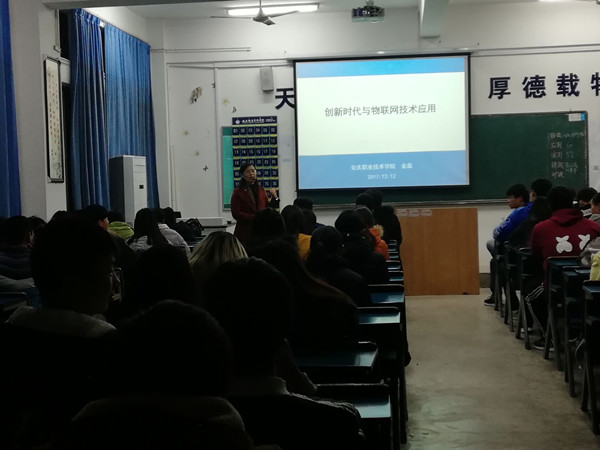 12月12日,科学人文艺术素质讲座《创新时代与物联网技术应用知识》开讲。讲座邀请金鑫老师主讲,2017级电子系计算机网络技术1班和2017级计算机动漫技术制作班及2017级计算机应用技术2班参加了此次讲座。