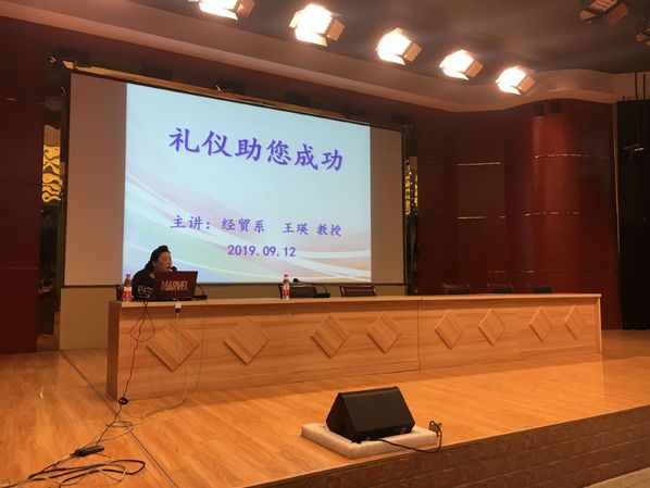 为帮助2019级新同学更好地适应大学校园生活,提高新生文明礼仪素养,9月12日晚,经济贸易系王瑛教授在图文信息中心一楼报告厅作题为《礼仪助你成功》专题讲座,来自各系600余名学生代表到场聆听。