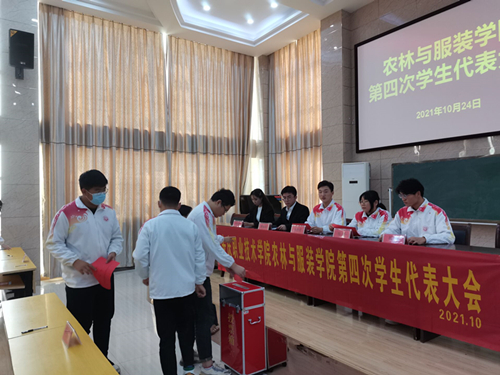 10月24日,农林与服装学院第四次学生代表大会在二号教学楼316教室顺利召开。学院党总支副书记许咏梅、团总支书记唐玲、校学生会主席陶礼及各分团代表共70余人参加大会。