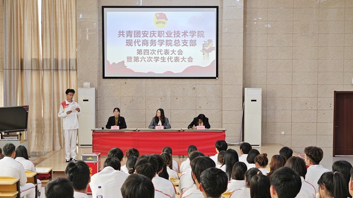 杨筝作《共青团beat365中文官方网站现代商务学院总支部第三届委员会工作报告》和《现代商务学院第三届委员会团费收缴、管理和使用情况报告》。报告分别从“以先进的理论思想武装青年”、“以规范的团学制度管理青年”、“以多样的社会实践锻造青年”、“以丰富的校园文化浸润青年”等方面回顾团学工作历程、总结不足,并提出改进方案;对团费管理情况、近年来团费收支情况和今后团费收缴、使用和管理工作的意见作出详细说明。