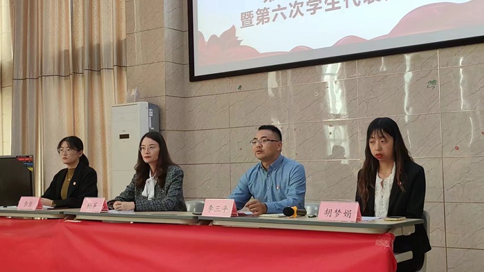 李三平对此次大会的召开表示热烈祝贺,并向为大会顺利召开付出辛勤努力的老师和同学们表示衷心感谢。李三平在致词中肯定了学院团学工作近几年的成绩,团学活动丰富多彩、志愿服务获得好评、书香校园氛围浓厚、德智体美齐头并进,学院诸多学生活动品牌收到积极反响。他对学生干部提出四点要求:一是强化理论学习,坚定不移听党话、跟党走。二是密切关心同学,当好联系学院与同学的桥梁纽带。三是树立工作标杆,打造建设优良学风的坚强堡垒。四是瞄准全面发展,努力成为高素质专业化新型人才。