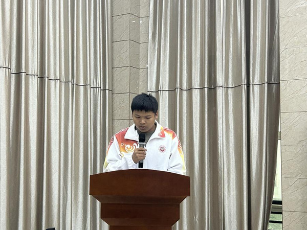 2023级建筑装饰工程技术2班马凌云作为学员代表发言,他号召大家成长为一名“有理想、善学习、讲道德、要自立、勇奋斗”的青年马克思主义者;并表示将严格遵守培训班的规章制度,端正学习态度,认真学习思考;以饱满的热情、坚定的信念、务实的作风,投入到青马工程的学习和实践中,努力成为信仰坚定、能力突出、素质优良、作风过硬的青年政治骨干。