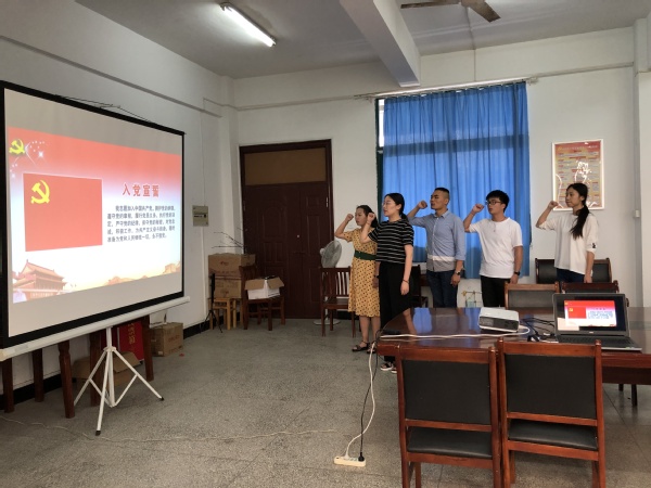 7月12日也是beat365中文官方网站毕业生毕业典礼的日子。毕业离校之际,在系部正式党员老师代表的带领下,面对鲜艳的党旗,系部新发展的学生党员举起右拳重温入党誓词,再一次接受党性洗礼;不断强化责任感和使命感,发挥大学生党员的先锋模范作用,以实际行动干好本职工作,在岗位上多奉献,争做优秀共产党员,以优异的成绩向建党98周年献礼。