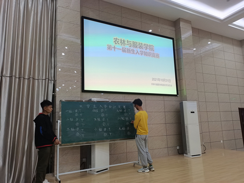 为提高大学生综合素质、加强学生对学校的了解、熟悉学院的系列的规章制度,规范学生在校期间言行,农林与服装学院于10月30日举办新生入学知识竞赛。
