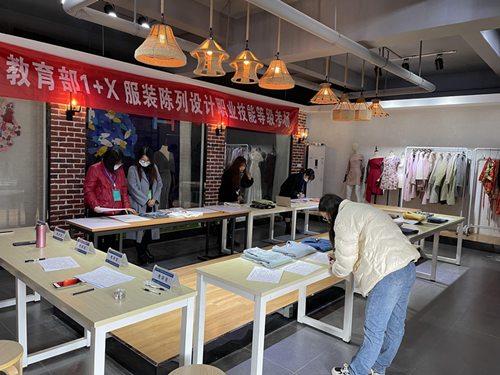 11月27日“1+X”服装陈列设计职业技能等级考试在beat365官网成功举办,也是该证书在全国的首考,受到了多方重视,学校实验实训中心负责人和农林服装学院领导班子到现场监督,证书负责机构北京锦达科教公司派多名专家现场指导工作,确保考试顺利进行。此次考试分为理论考试,虚拟仿真软件操作和实训操作三个部分,全面考查学生服装搭配,店铺陈列,卖场规划等对接企业岗位的专业技术水平和综合能力。