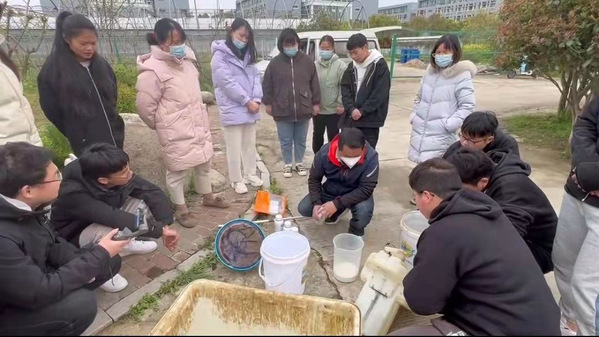 广西田园生化股份有限公司罗老师介绍了当前小麦病虫害的发生情况和一喷三防套餐,演示了农药的二次稀释过程。胡老师指导学生对小麦田块进行了测绘,并设置了流量、飞行高度等参数。参数设置完毕开始作业,通过小麦飞施杀虫剂烯啶·吡蚜酮、杀菌剂丙硫菌唑、叶面肥等,有效防治纹枯病、锈病、蚜虫和吸浆虫等病虫害,为小麦健康生长保驾护航。此次综合实训课,促进了学生职业技能的提升,加强了校企合作产教融合的紧密度。