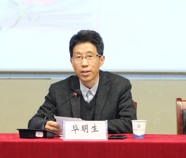 校长毕明生肯定了农林与服装学院和图文信息中心联合举办书香校园这一活动举措。同时信手拈来一句句古诗词:“鸟欲高飞先振翅,人求上进先读书”、“粗缯大布裹生涯,腹有诗书气自华”、“独上高楼、望尽天涯路”、“会当凌绝顶,一览众山小”、“枕上诗书闲处好,门前风景雨来佳”、“书卷多情似故人,晨昏忧乐每相亲”等等与在座的学生分享其意境及读书的美妙、幸福和快乐!