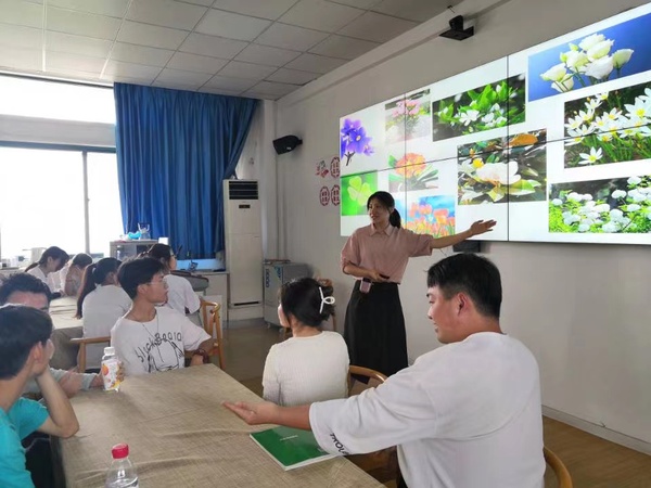 活动伊始,余老师引导同学们根据自己喜欢的颜色分组,大家以植物相约,相知相识并互相交流,共同分享自己最喜欢的植物及寓意。活动第二个环节,余老师带领同学们体验了一场特殊的心理之旅,通过腹式呼吸,辅之意象引导,同学们化身为自己喜欢的植物,想象它们发芽、成长、开花、结果。活动第三个环节,组员合作绘制心灵花园,完善自我认识,提升自我调控能力。最后,余老师从心理学角度分析了同学们在活动中展示自己最喜欢的植物,既是因为同学们被这些植物的优点所吸引,也是因为这些植物的特质与同学们的性格特点有相似之处,投射出了同学们对未来的期望与追求。余老师引导同学们要通过分析不同植物的特点和价值,看到最真实、最独特的自己,正视自己的心理健康,学会悦纳自己。