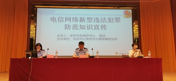 为进一步提高我院学生防范各类电信诈骗意识和反诈骗能力,维护我院学生利益,预防和减少电信诈骗案件的发生,6月8日晚,农林与服装学院联合安庆市公安局反电诈中心、老峰派出所在图文信息中心一楼报告厅开展《电信网络新型违法犯罪防范知识宣传》讲座。本场讲座由安庆市公安局反电诈中心姚洁警官主讲,学院学生工作负责人主持。老峰派出所、校保卫处、在校五百余名师生聆听了讲座。