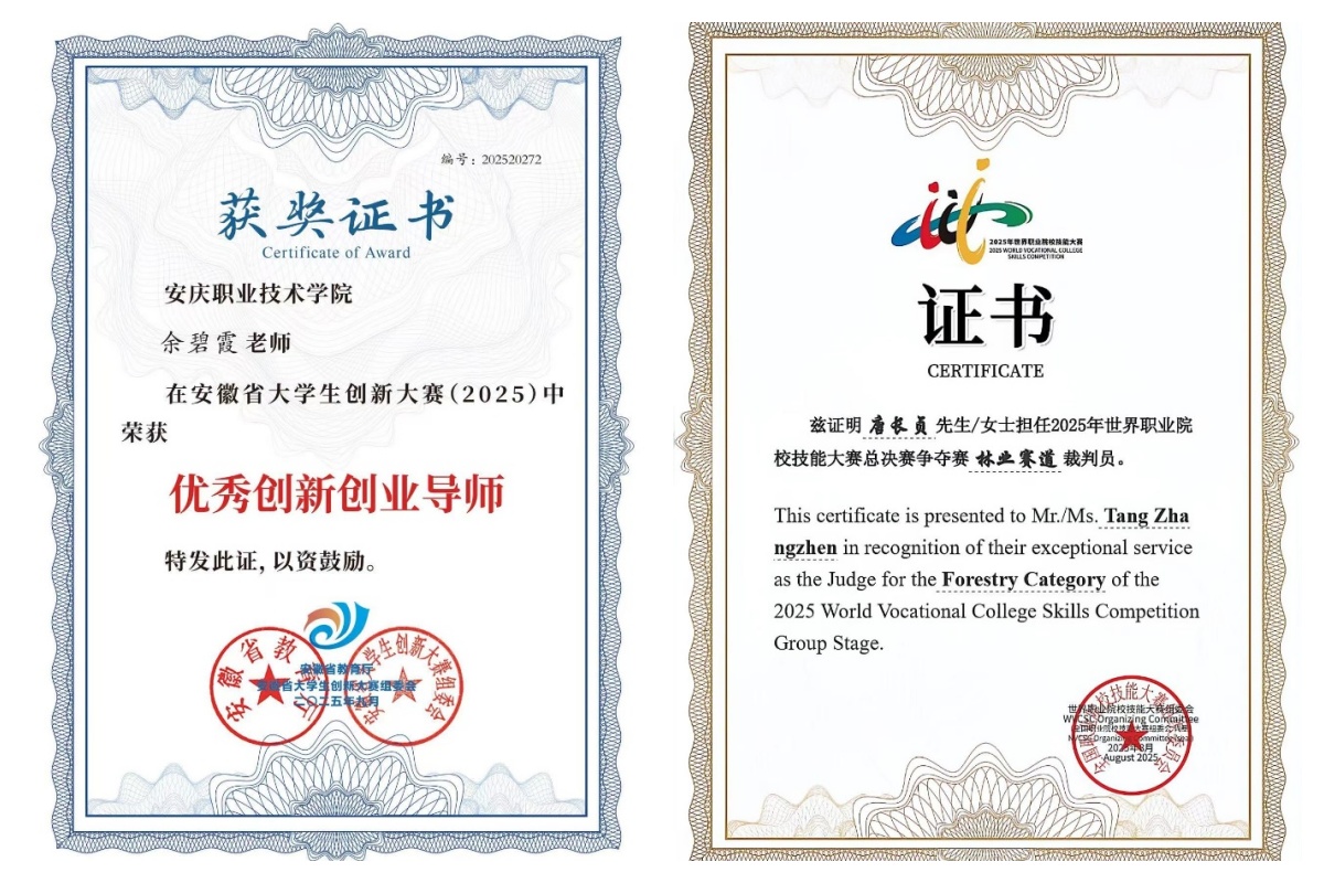 安徽省教学成果二等奖1项;指导学生在园林景观设计与施工、园艺等职业技能大赛、创新大赛、设计大赛等各类大赛中获得国家级奖项12项,省级金奖6项,二三等奖20余项。