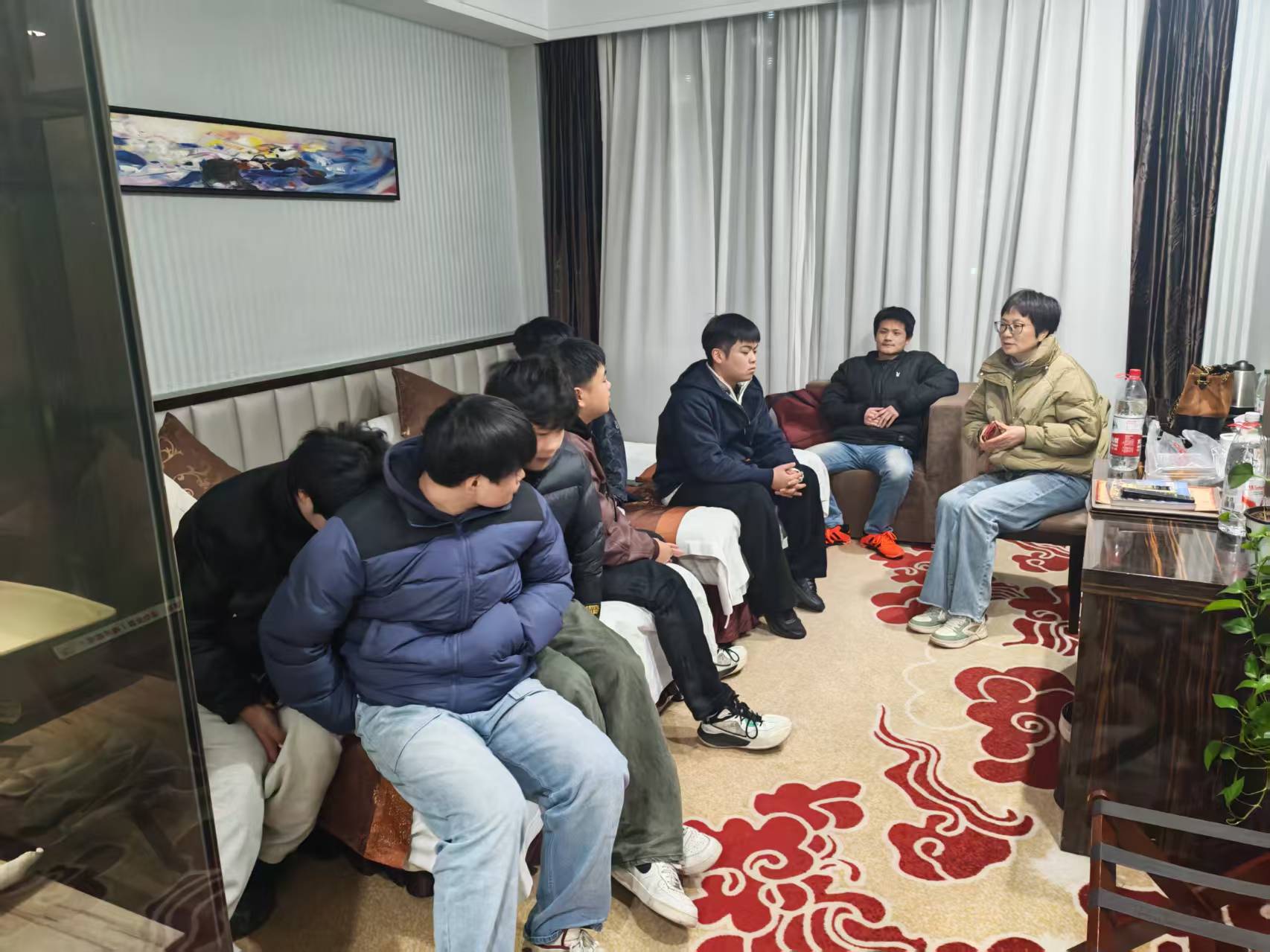 在走访慰问中,老师和同学们亲切围坐,面对面交流沟通。学生工作负责人肯定了应征入伍学生投身国防、报效祖国的热情,征兵专干和辅导员老师为应征入伍的学生解读征兵政策,就大学生参军相关的学费减免、补偿代偿、升学就业等优待政策向学生进行了现场答疑,同时还结合学生的实习经历聚焦其成长规划,为其明晰发展方向、护航逐梦之路。在场的应征学生纷纷表示将坚定信念,不辜负学院的培养,领导的期望,为保家卫国贡献自己的力量。小小的宾馆房间里充满了浓浓的温情。