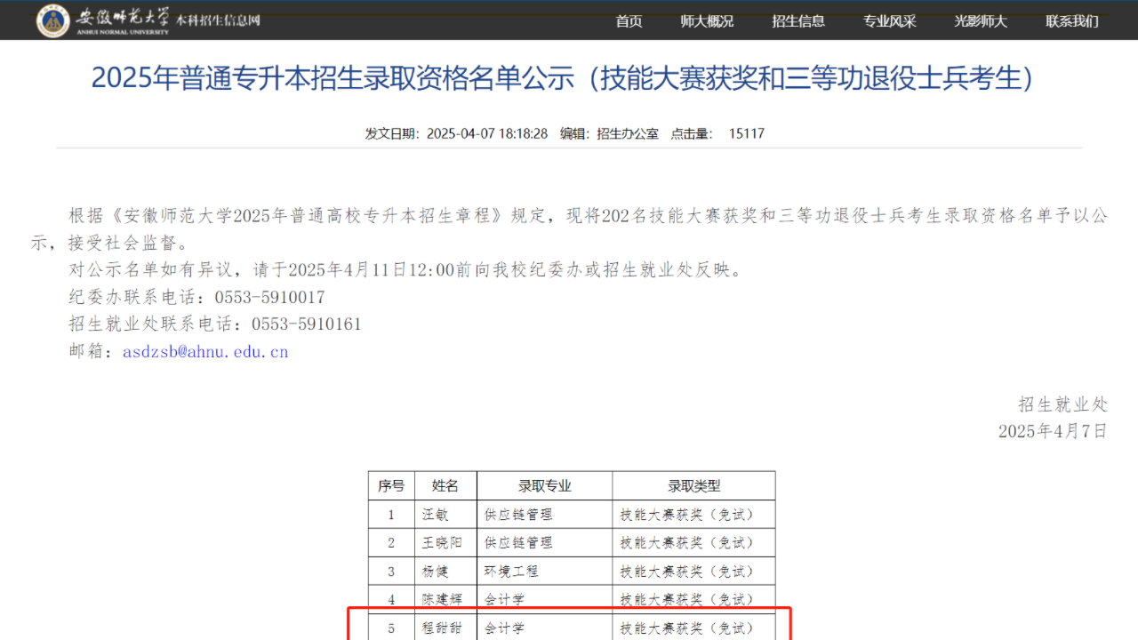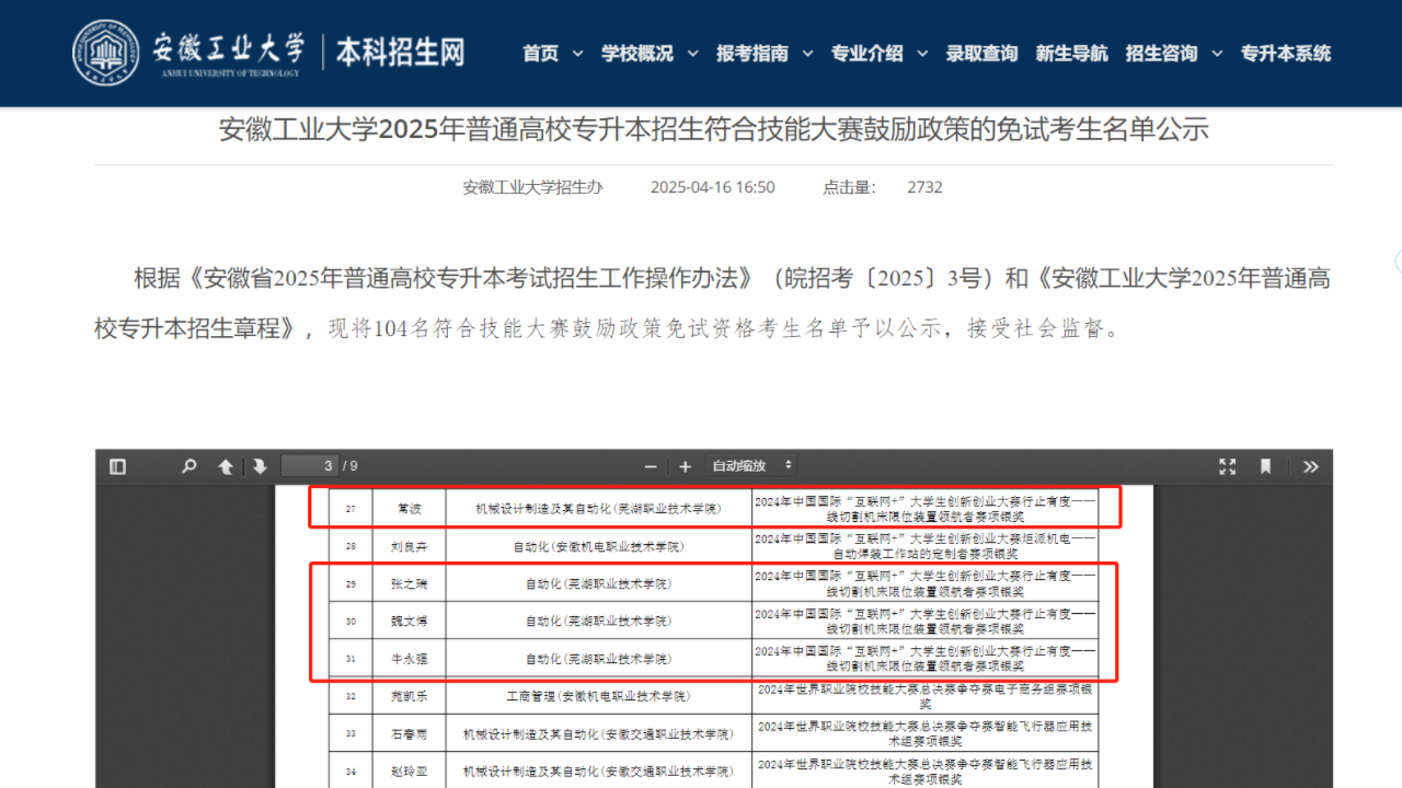 近日获悉,beat365官网机电工程学院、现代商务学院25届毕业生牛永强、常波、张之瑞、魏文博、程甜甜已通过2025年普高“专升本”免试直录资格申请,提前被安徽师范大学、安徽工业大学2所本科院校录取。