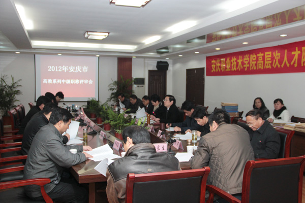 11月23日下午,2012年安庆市属高校中级职称评审会在我院召开。院领导孙晓峰、张旺牛、余祖文、毕明生、方天祜,市人力资源和社会保障局专业技术人员管理办公室主任马自萍,安庆医药高等专科学校副校长张伟群,桐城师范高等专科学校党政主要负责人占峰,安徽黄梅戏艺术职业学院院长黄新民等17位同志组成专家评审委员会。