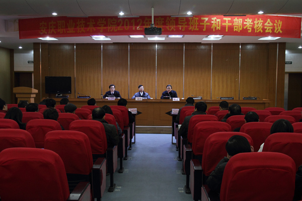 1月25日,我院2012年度领导班子和干部年度考核在图文信息中心三楼报告厅举行。市委组织部考核组方晓敏副部长莅临我院指导考核工作。院党委书记江洪同志主持考核会。院长孙晓峰,院领导张旺牛、施运华、毕明生、方天祜,党委委员、办公室主任吴登明参加了会议。学院副科级以上干部,副高级以上职称人员,工会、教代会委员,市、区人大代表、政协委员共126人参加考核会议。