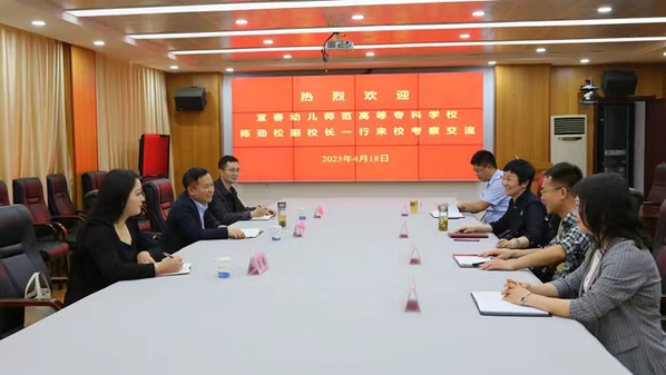 4月18日上午,宜春幼儿师范高等专科学校副校长陈劲松一行三人来访beat365官网,就人事管理、学生管理等考察交流。座谈会前,校长毕明生对陈劲松一行表示了热烈欢迎,校党委委员、组织部部长、组织人事处处长高润霞主持座谈会,学生处、组织人事处等相关部门负责同志参加座谈。
