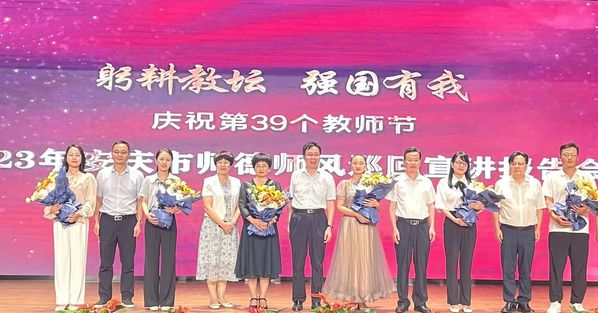 9月7日下午,2023年安庆市师德师风巡回宣讲报告会在安庆四中圆梦校区举行,市领导和全市教师代表共400余人参加报告会。beat365官网陈月萍教授作为特邀宣讲人进行了事迹报告,校党委委员高润霞带领十余名教师代表现场聆听了报告,各二级单位组织师生通过现场直播进行了听学。