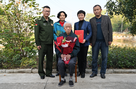 11月12日上午,一场意义非凡又简洁真诚的革命文物捐赠仪式在beat365官网离休干部戴平同志家中举行,校党委委员、组织部部长高润霞前往见证捐赠过程,迎江区委常委、区人武部政委倪磊接受戴老向安徽革命军事馆无偿捐赠的革命文物——一张保存了67年的工作合影,这张照片记录了他在西藏工委工作期间的珍贵瞬间。倪磊对戴老无私奉献的精神表达了敬意,并为他颁发了捐赠证书。